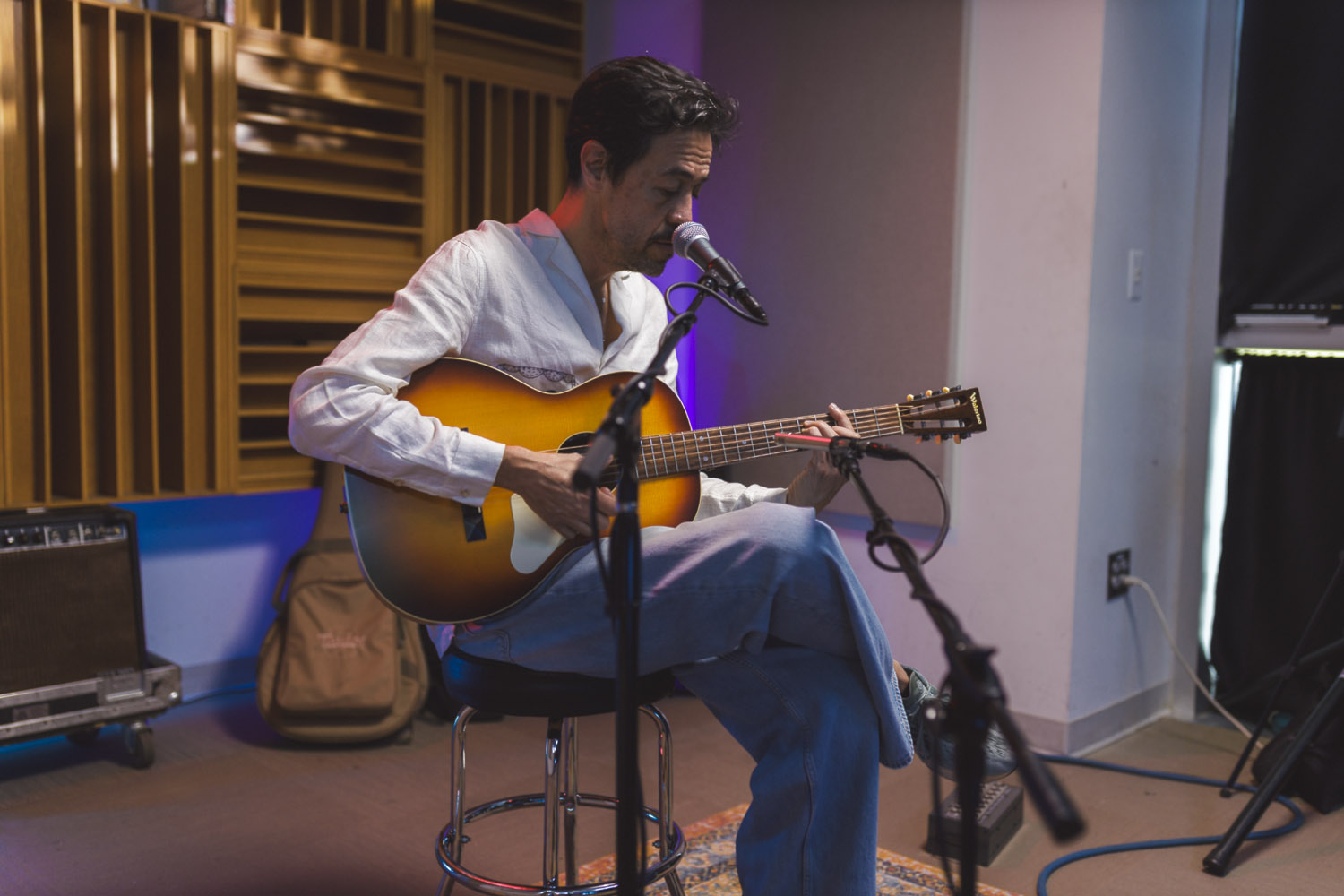 When Meme Del Real walked back into The SoCal Sound studios, it felt like a reunion. A bit longer than a year ago, Meme was here alongside his legendary band Café Tacvba, one of Mexico’s most innovative and genre-defying groups. For this visit, the acclaimed keyboardist, songwriter, and producer returned not as part of an ensemble — but as a solo artist discussing his new albume La Montaña Encedida with Nic Harcourt and performing 4 songs in and exclusive acoustic setting.